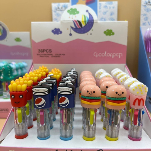 خودکار 4 رنگ کوتاه فست فود ،گیفت حرف ف و جشن خودکار